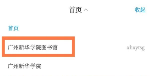 3.打开【学习通】点击上方的“首页”,选择“广州新华学院图书馆(xhxytsg)”。
