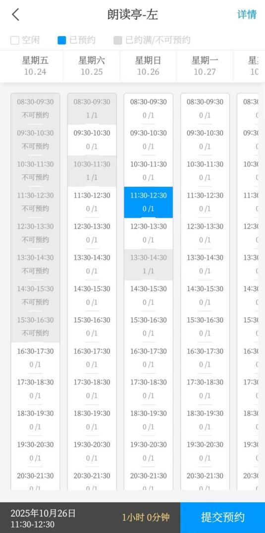 5.灵活预约:如有空位,允许预约当前时段,如读者在9:30前可预约8:30-9:30这一时段。