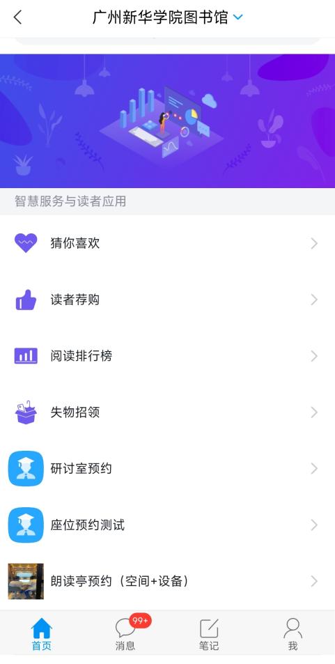 (注:朗读亭可从学习通app、图书馆微信公众号(微图书馆-我的图书馆-朗读亭预约)、电脑端(http://16q.cn/a2KypQ)进行预约,以下预约操作方法以“学习通app”为例。)