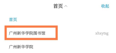 打开【学习通】点击上方的“首页”,选择“广州新华学院图书馆(xhxytsg)”。