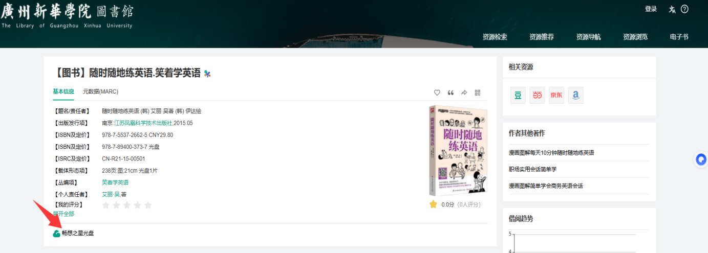如:《随时随地练英语》,光盘SSBN:978-7-89400-373-7,操作如下: