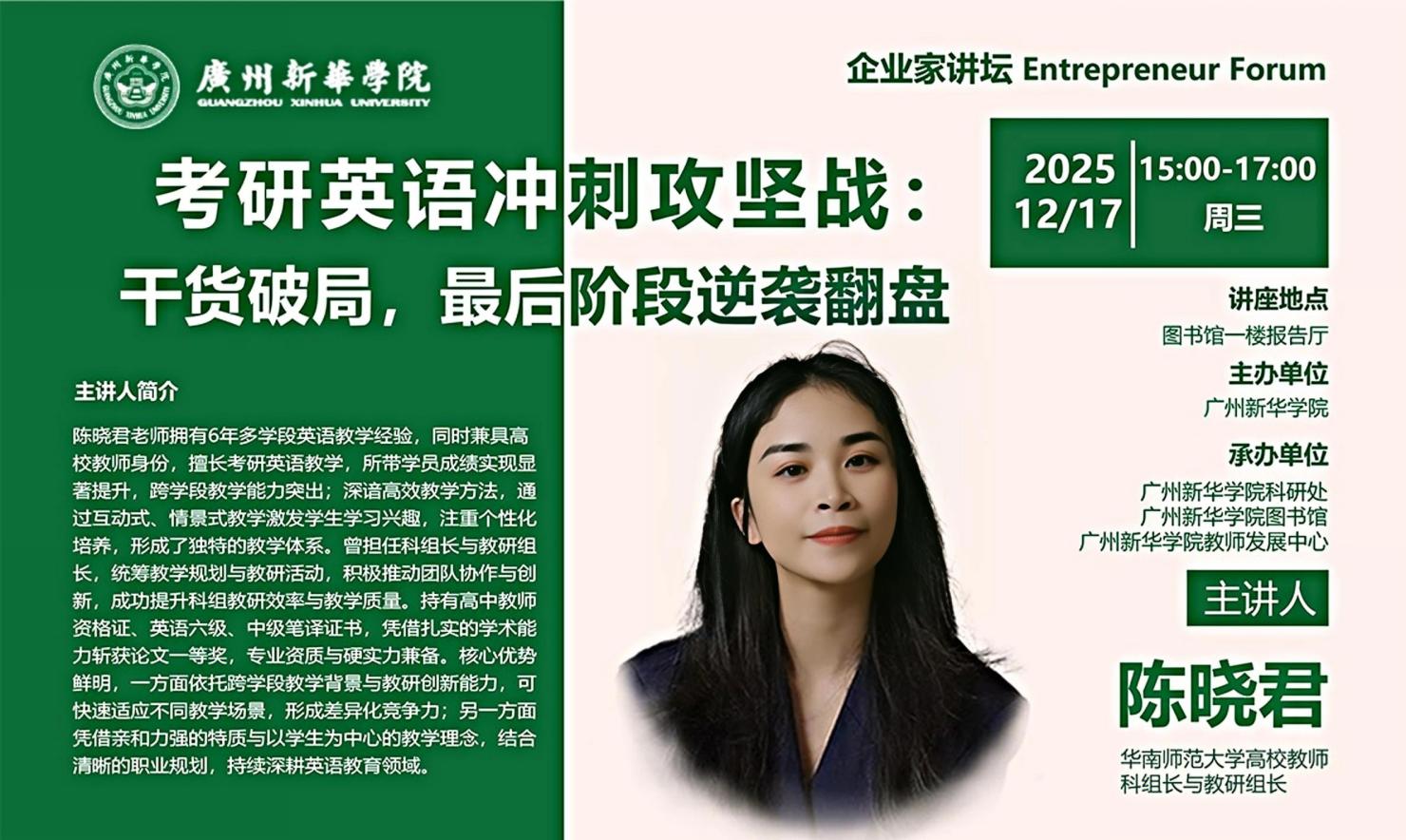 讲座主题:考研英语冲刺攻坚战:干货破局,最后阶段逆袭翻盘