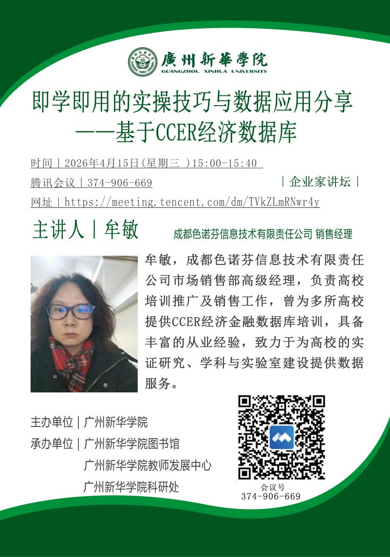 讲座主题:即学即用的实操技巧与数据应用分享——基于CCER经济数据库