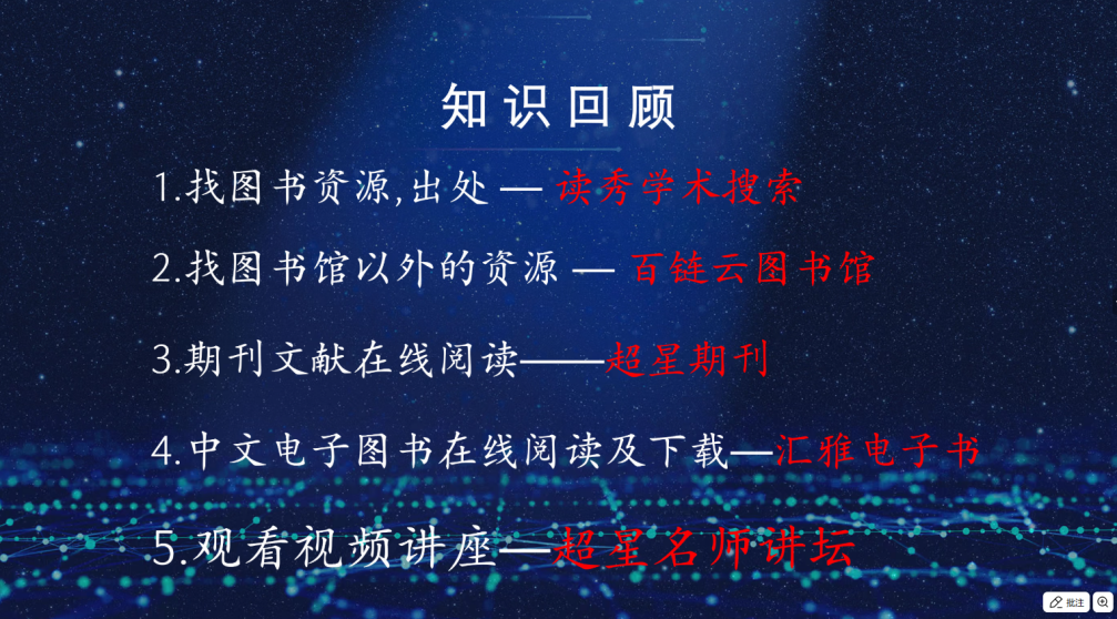 讲座围绕读秀知识库、百链云图书馆、超星期刊、汇雅电子书和超星名师讲坛五大平台展开。读秀知识库以“图书碎片化”为特色,不仅支持跨页检索与图文提取,更通过引证分析功能揭示学术脉络,实现文献溯源与馆际互借无缝衔接。