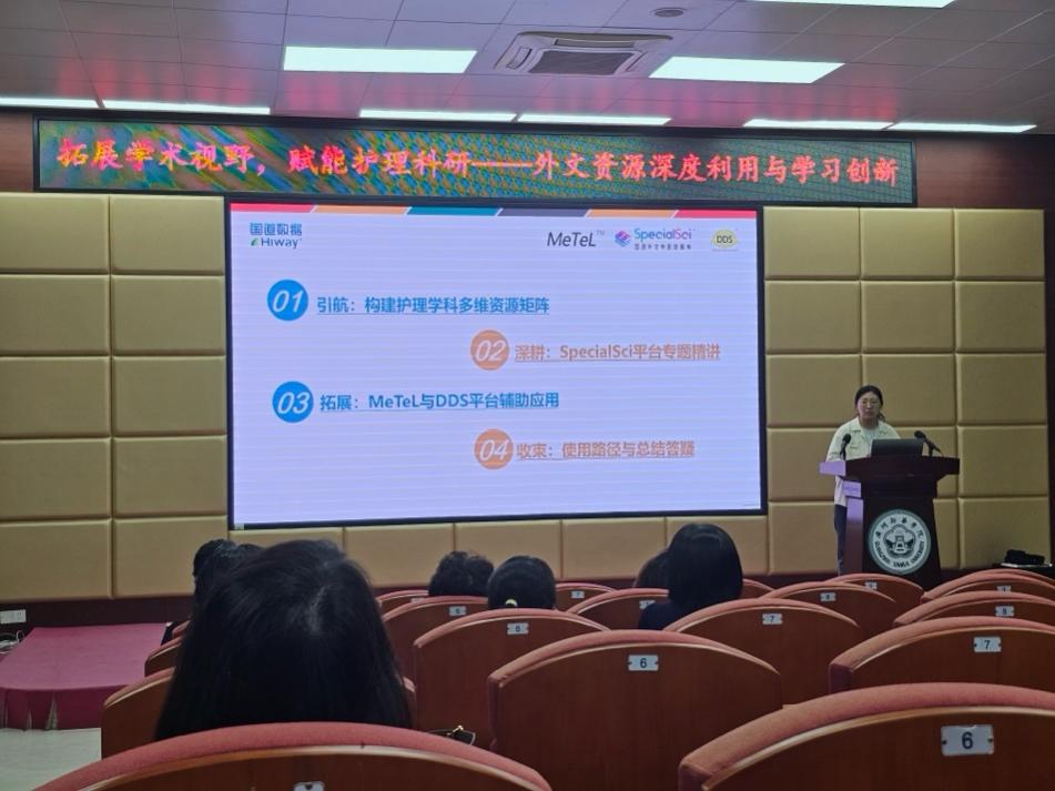 讲座于下午1点准时开始,围绕四个部分依次展开:构建护理学科多维资源矩阵、SpecialSci平台专题精讲拓展、MeTeL与DDS平台辅助应用、使用路径与总结答疑。