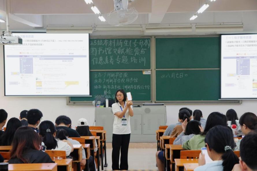 为助力2025级本科新生(含普通专升本新生)快速适应校园学术环境,熟练掌握图书馆资源使用方法与信息检索核心技能,10月18日,由广州新华学院图书馆主办、新华读书社承办、校红十字协会协办的“遇见‘新’华,探索‘新’图”新生图书馆资源使用与信息素养提升培训在东莞和广州两校区同步开展。