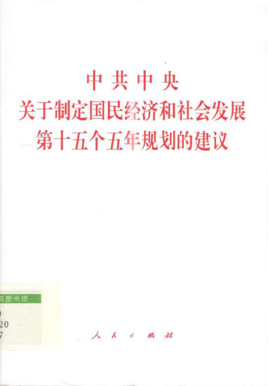 5.《中共中央关于制定国民经济和社会发展第十五个五年规划的建议》